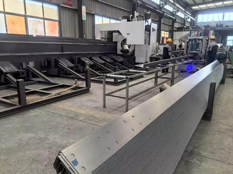 2. पंचिंग: सीएनसी पंचिंग यूनिट से सुसज्जित, यह ±0.2 मिमी के छेद व्यास सहिष्णुता और ±0.3 मिमी की छेद रिक्ति सटीकता के साथ, वेब और फ्लैंज के बहु-कोण छिद्रण का समर्थन करता है। यह एक साथ अमेरिकी मानक सी-सेक्शन स्टील कनेक्शन पैटर्न (जैसे सिम्पसन स्ट्रॉन्ग-टाई एडाप्टर छेद) के अनुरूप छेद भी उत्पन्न कर सकता है।