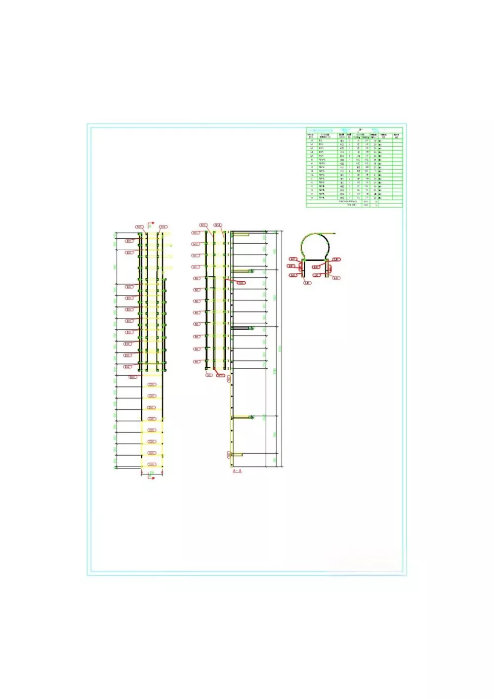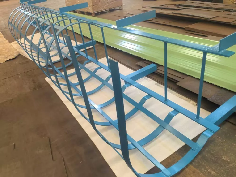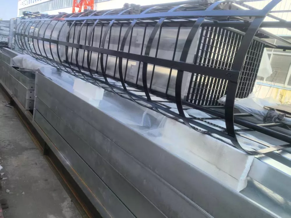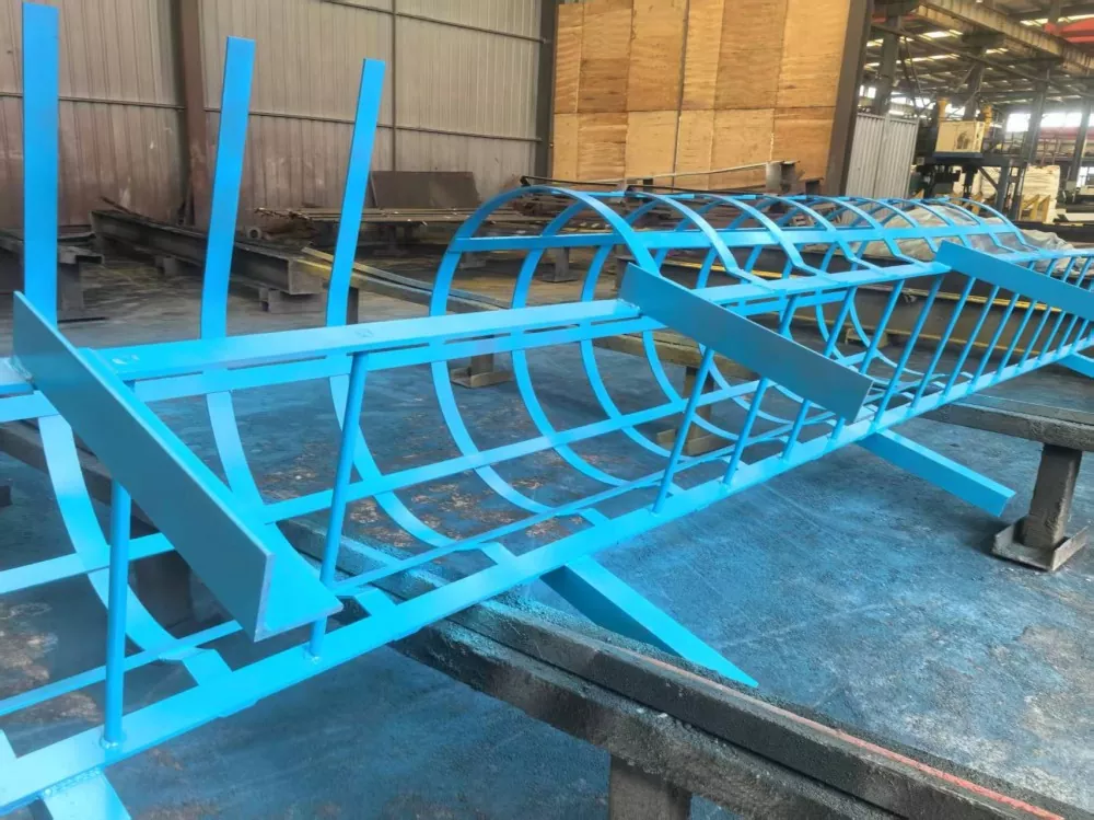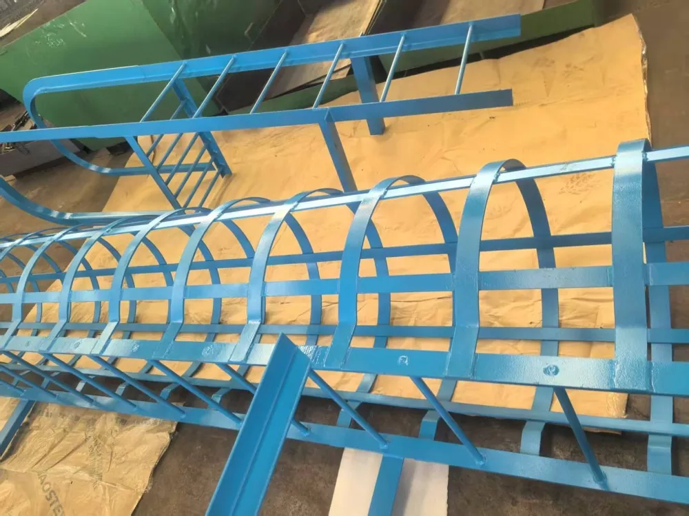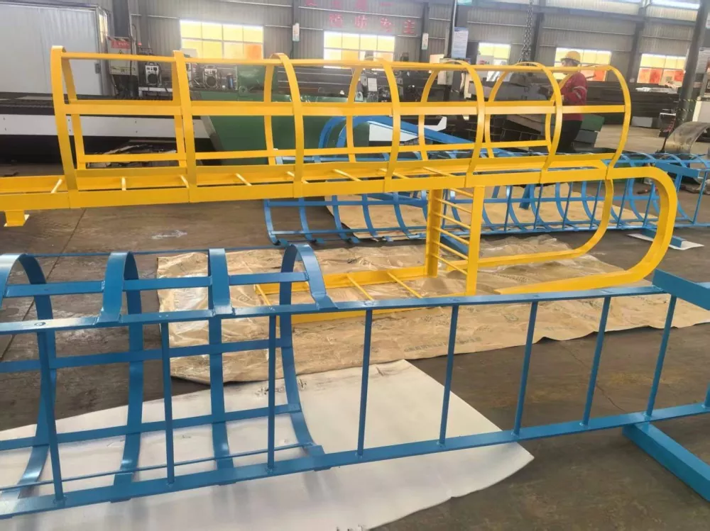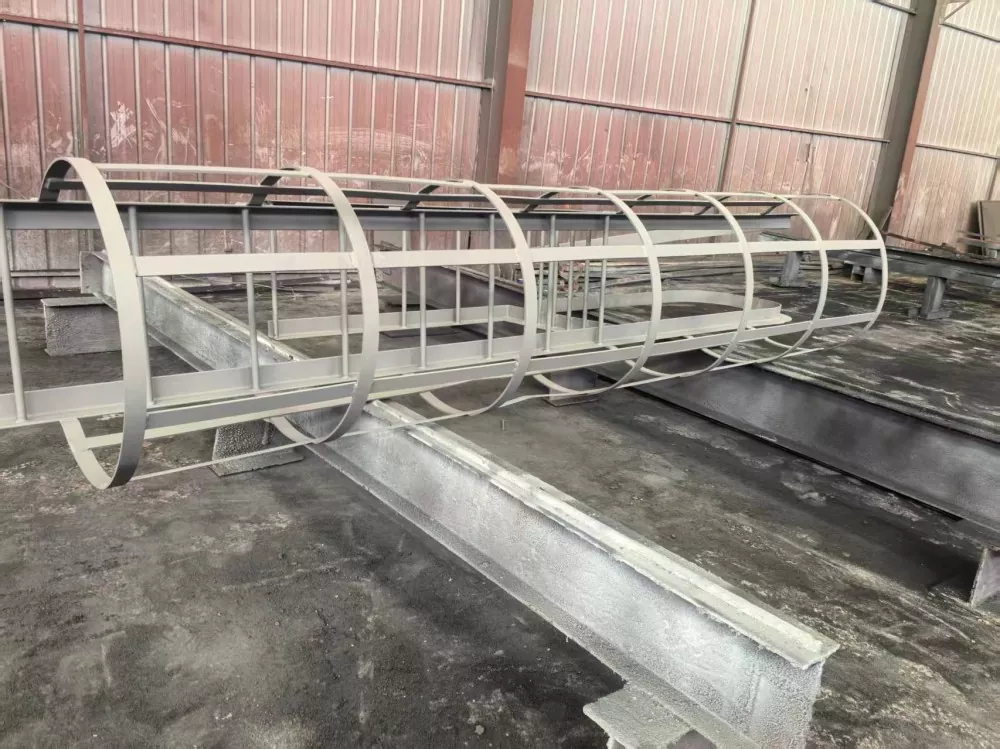 रेलिंग स्थापना: 3 मीटर से अधिक ऊंचाई वाले चरणों के लिए, रेलिंग जमीन से 2.5 मीटर ऊपर स्थापित की जानी चाहिए। रेलिंग का व्यास 700 मिमी और 800 मिमी के बीच होना चाहिए। क्षैतिज छल्ले 16 मिमी गोल स्टील से बने होने चाहिए, छल्ले के बीच की दूरी 300 मिमी से 450 मिमी होनी चाहिए। ऊर्ध्वाधर सुदृढ़ीकरण छड़ें 12 मिमी गोल स्टील से बनी होनी चाहिए, जिसमें कम से कम चार छड़ें समान दूरी पर हों। सुरक्षा पिंजरे को सीढ़ी या विश्राम मंच के शीर्ष पर लगातार स्थापित किया जाना चाहिए। कनेक्टर्स और फिक्सिंग
