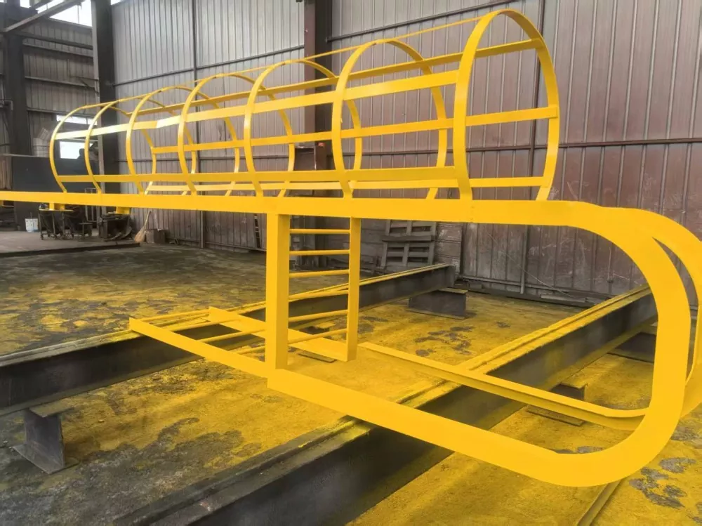 वेल्डिंग आवश्यकताएँ: सीढ़ी बीम को पूर्ण-गहराई वेल्डिंग का उपयोग करके चरणों और प्लेटफार्मों या संरचनात्मक सदस्यों से जोड़ा जाना चाहिए। वेल्ड की ऊंचाई जुड़े हुए घटक की न्यूनतम मोटाई से 0.7 गुना से कम नहीं होनी चाहिए, और स्लैग समावेशन और छिद्र से मुक्त होनी चाहिए। महत्वपूर्ण जोड़ों को भी दोष का पता लगाना चाहिए।