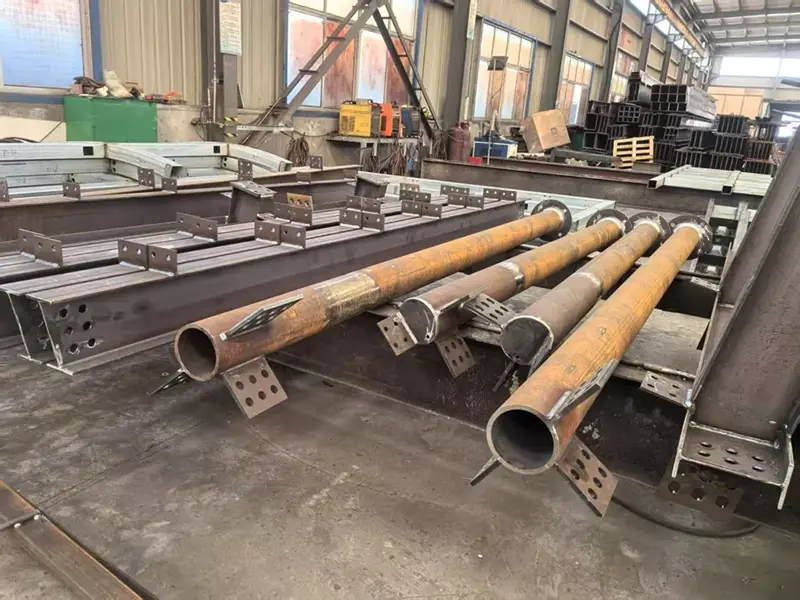 स्टील को काटने, वेल्डिंग, ड्रिलिंग आदि द्वारा डिजाइन चित्र के अनुसार प्रसंस्करण संयंत्र में पूर्वनिर्मित किया जाता है, विभिन्न घटकों को बनाने के लिए, जैसे कि स्टील बीम, स्टील कॉलम, पर्लिंस, आदि। पूर्वनिर्मित प्रक्रिया के दौरान, घटकों के आयामी सटीकता को सुनिश्चित करने के लिए प्रसंस्करण प्रौद्योगिकी मानकों को कड़ाई से लागू किया जाता है। उदाहरण के लिए, स्टील बीम बनाते समय, निकला हुआ किनारा प्लेट और वेब प्लेट, वेल्डिंग गुणवत्ता आदि के बीच का अंतर विनिर्देशों की आवश्यकताओं को पूरा करना चाहिए। संसाधित घटकों को आसान परिवहन और ऑन-साइट असेंबली के लिए गिने और चिह्नित किया जाता है।