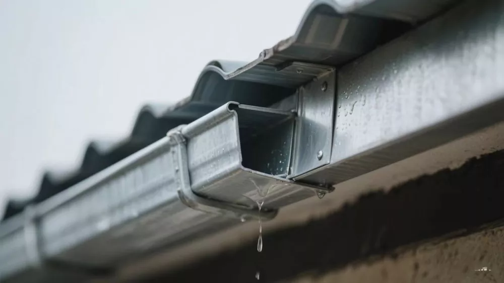 हम छत की डेकिंग के ऊपर फ्लैशिंग स्थापित कर सकते हैं। गटर के निचले सिरे को छत की छत के नीचे रखा जाना चाहिए और सीलेंट से सील किया जाना चाहिए। मुख्य रूप से वर्षा जल राइजर के कनेक्शन के लिए गटर के तल पर जल निकासी छेद प्रदान किए जाने चाहिए।